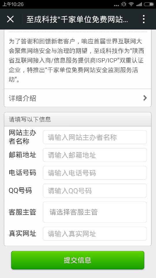 至成科技“千家单位免费网站安全检测服务”活动具体参与方法如下: