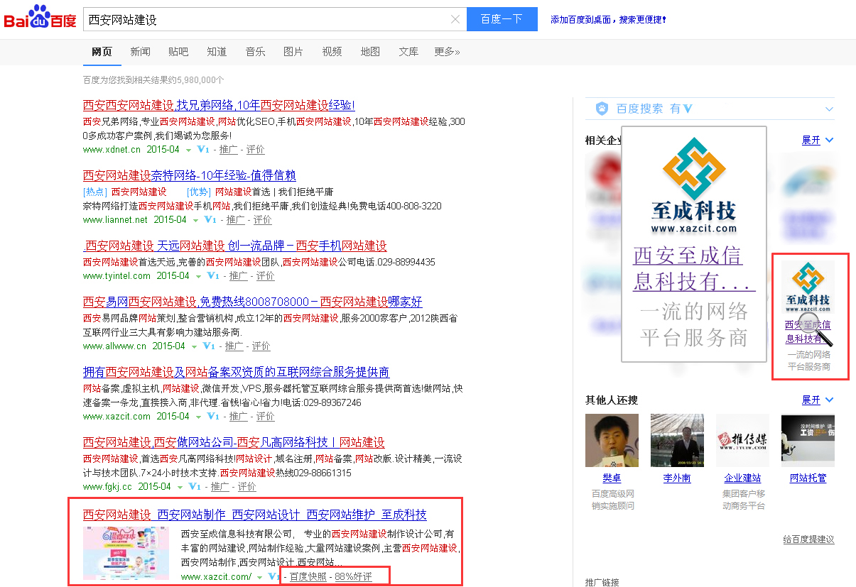 近日至成科技被百度授予“一流的网络平台服务商”荣誉称号,是西北地区先进获此殊荣的互联网企业。(搜索“西安网站建设”即可进行查看)