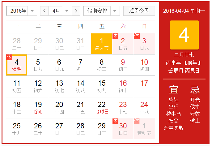 根据《国务院办公厅关于2016年部分节假日安排的通知》,并结合我公司实际,现将至成科技2016清明节放假时间通知如下: