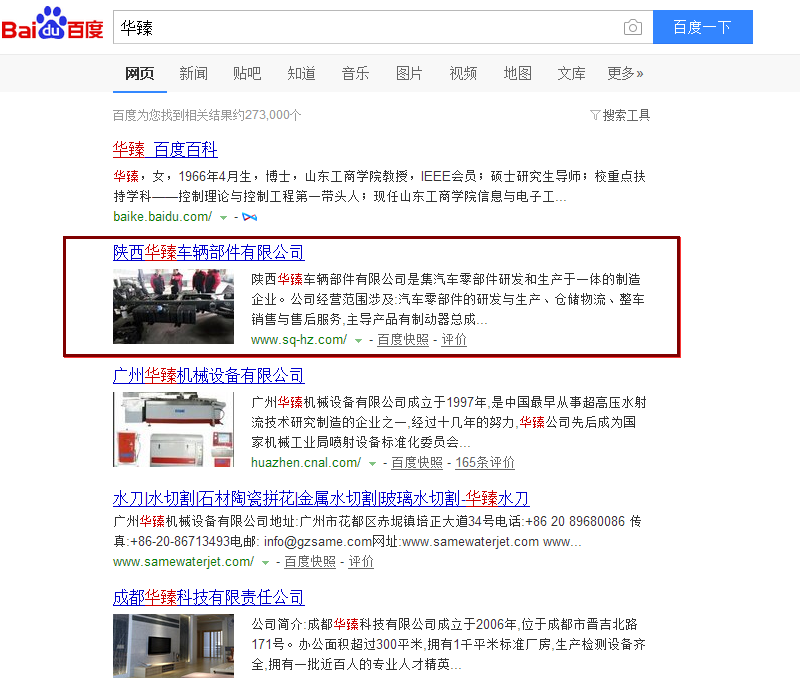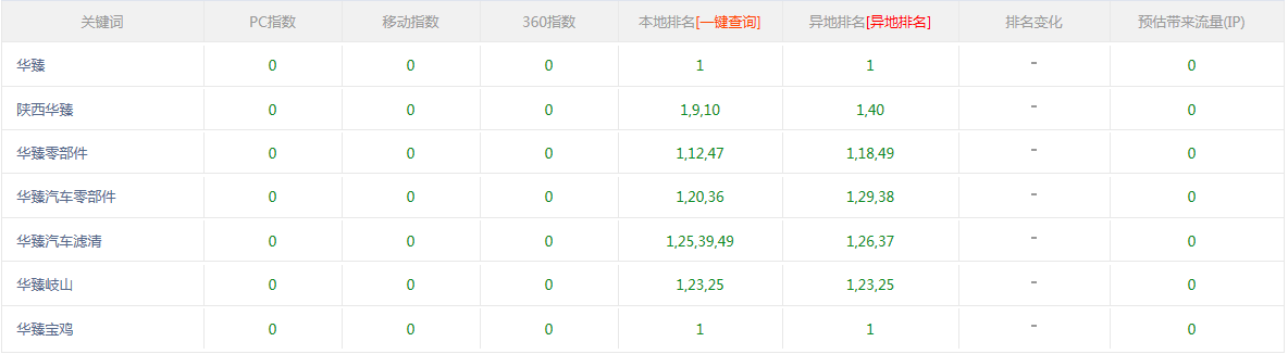 华臻车辆网站关键词百度排名状况如下: