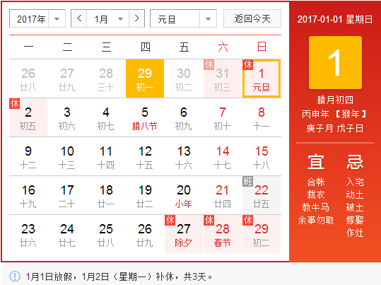 根据《国务院办公厅关于2017年部分节假日安排通知》和政府办公厅的通知精神,结合我公司的实际,现将2017年元旦节放假时间安排如下:
