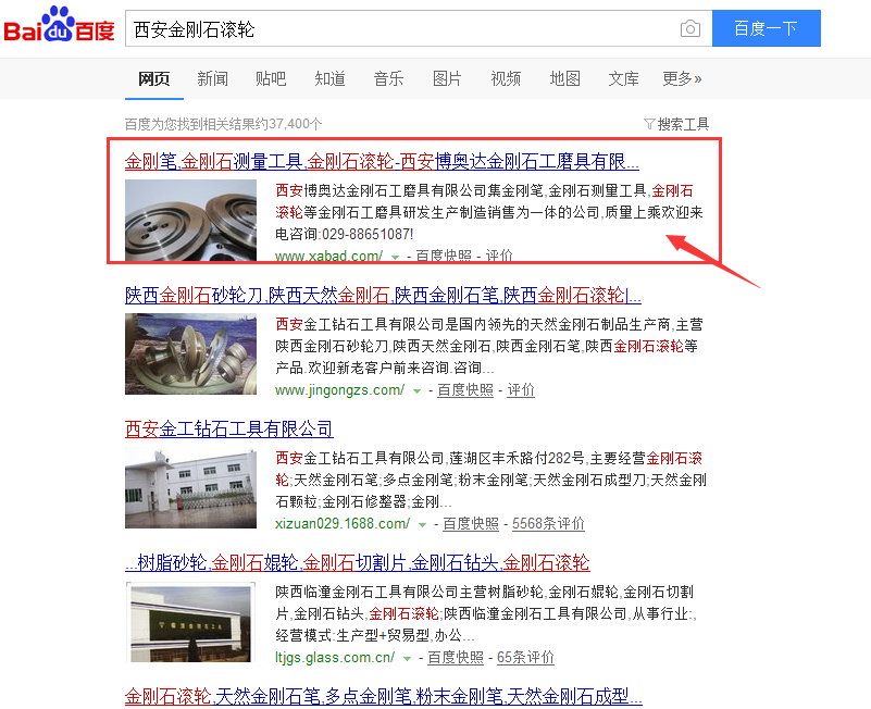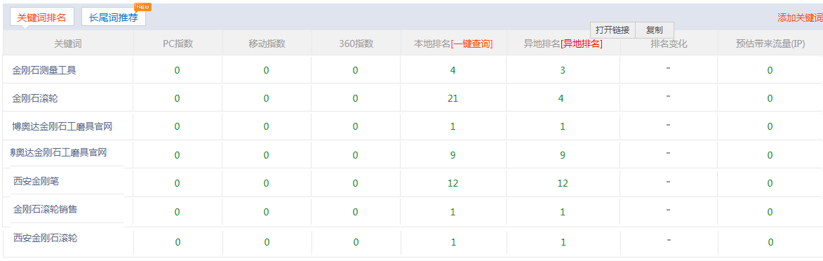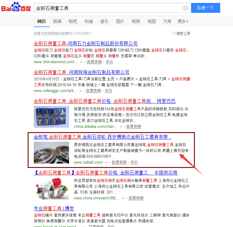 附录:博奥达金刚石网站优化排名效果展示: