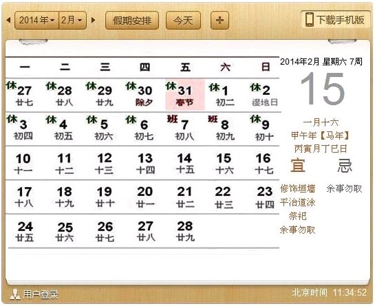 放假时间:2014年1月27日—2014年2月6日 共计:11天