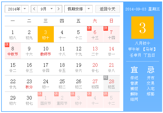 根据《国务院办公厅关于2014年部分节假日安排的通知》,现将至成科技2014中秋节放假时间通知如下: