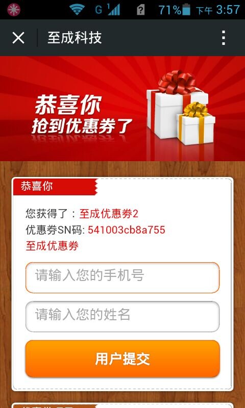 至成科技微信公众服务平台“微活动”功能展示