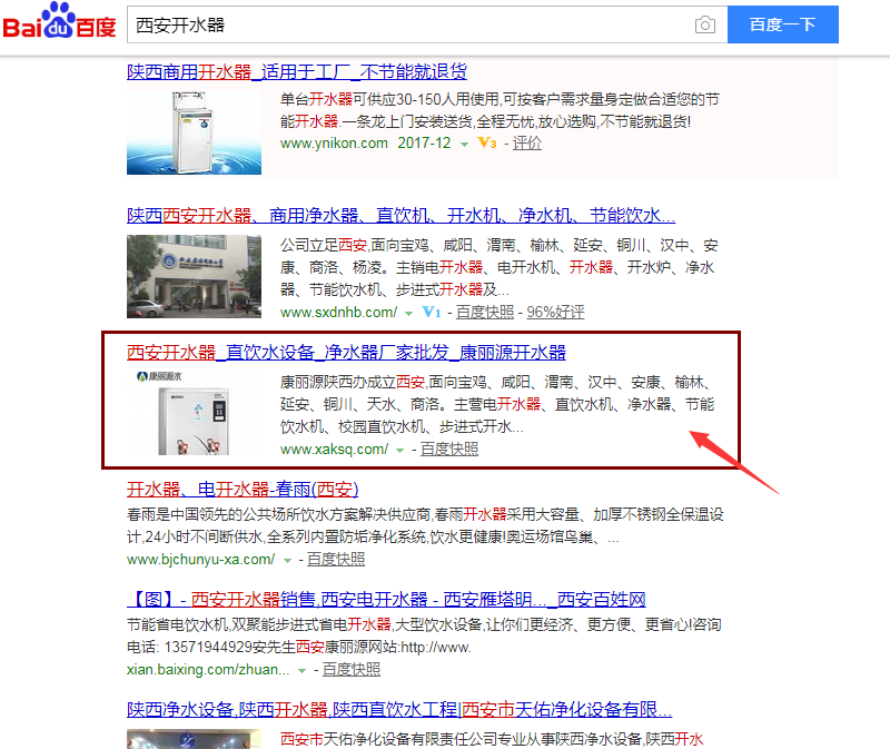 至成科技携手康丽源节能饮水机取得SEO优化效果展示: